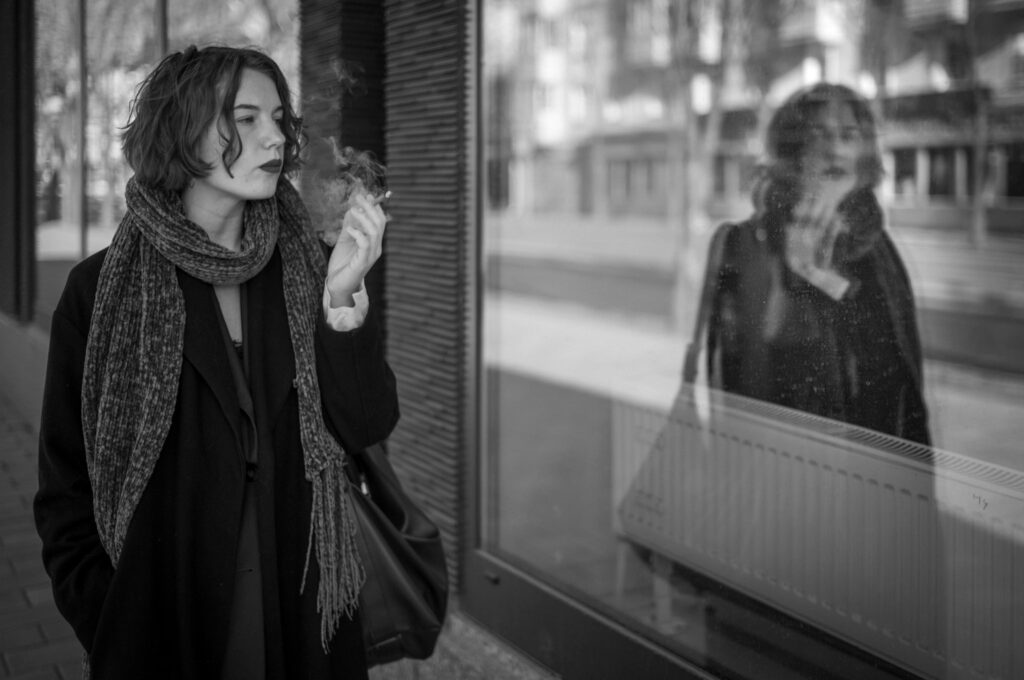 撮影者コメント:13時頃にスーパーの窓ガラスの前で撮影。主役を女性自身でなくガラスに映った女性の視線にすることで、味のある写真にしたいと思った。