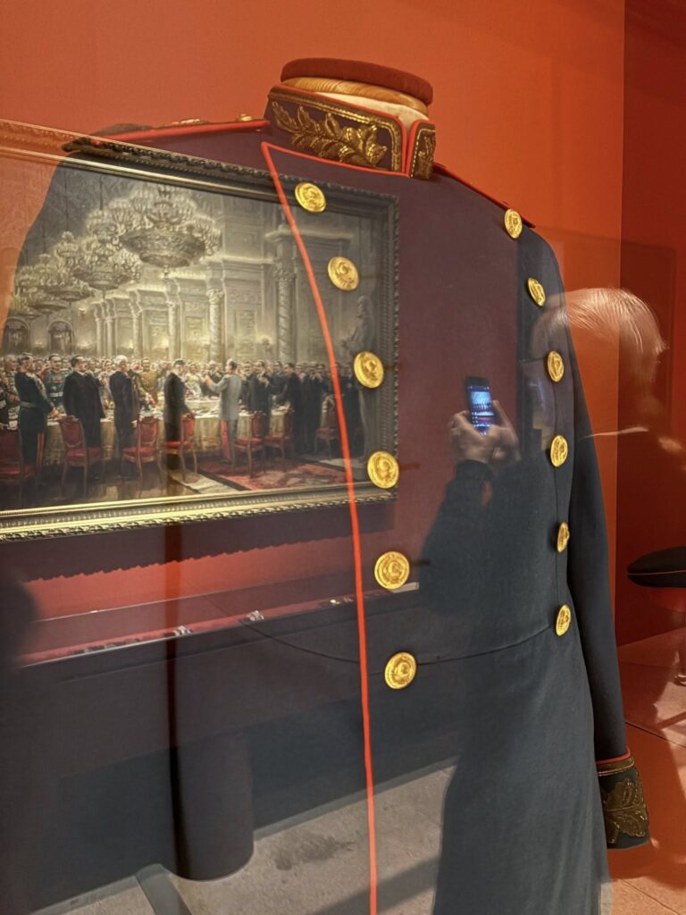 撮影者コメント:現在、モスクワ中心部で開催中の大祖国戦争勝利80周年記念展で撮影しました。スターリンの軍服を記録用に撮影しようとした際に、どうしても向かい側の絵画や観覧者が映り込んでしまい、いっそ「これだ」と思いつきました。他にも水たまりに映るモスクなどの写真もありましたが、投稿作品の方がストーリー性が感じられるかなと思い、出してみました。